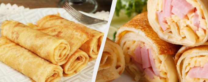 Täidisega pannkoogid on universaalne roog, millest te ei tüdine, olenemata sellest, kui palju seda küpsetate. Need on mõlemad rahuldavad ja neid on lihtne valmistada. Soovitame valmistada imelisi rulle juustu ja singiga – see on kõige populaarsem pannkookide täidis restoranides. Nende retseptist saab kindlasti teie lemmik.