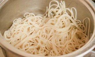 Kõigepealt peate lõikama suluguni juustu pikkadeks paksudeks ribadeks. Samuti peate lehttaigna ribadeks lõikama.
